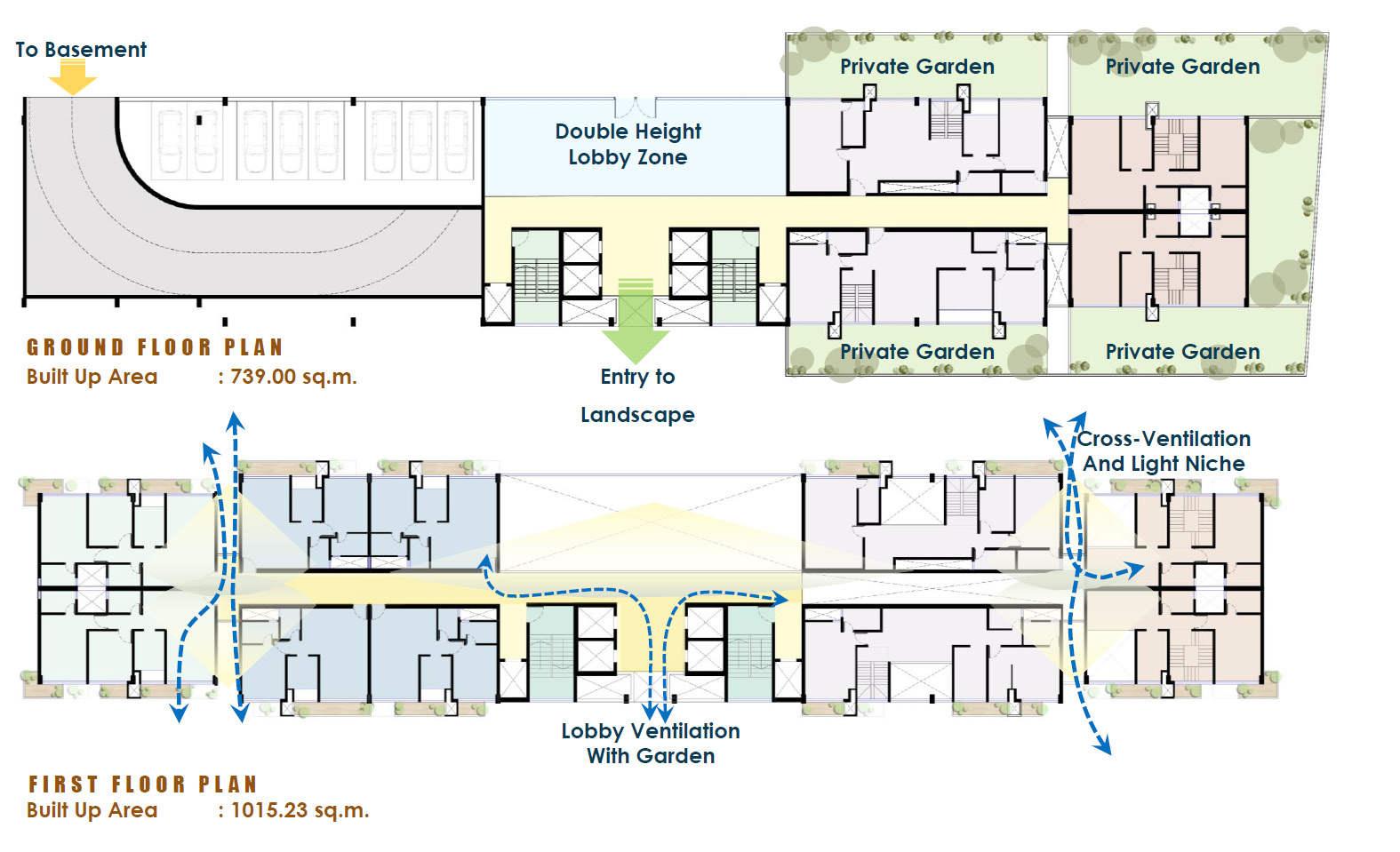 Volumes of planform are rotated to adopt the contour of the site, climate and surrounding. Also, this free form giving plan fluid look.