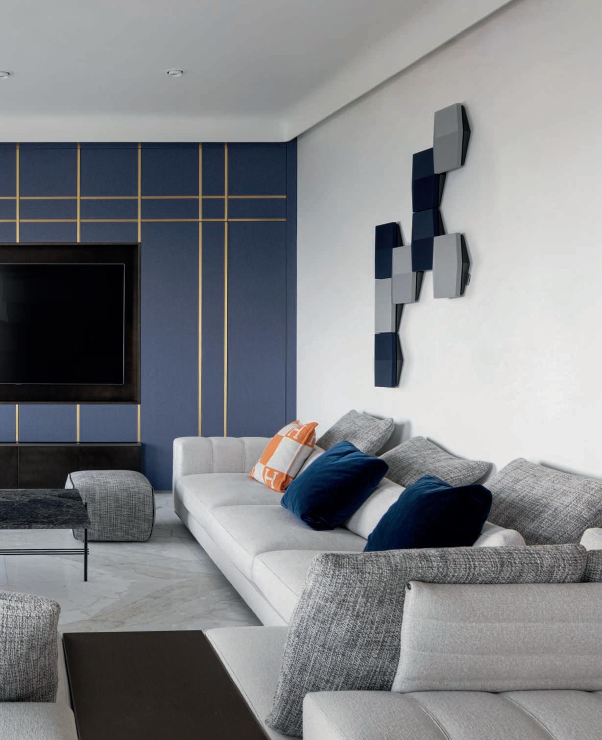 BiancamariaSantangelo, interior designer,ha rmato ilprogettodi un eleganteappartamento in dialogoconilpaesaggio grazieadampie aperture che incorniciano le incantevoli vistesul golfodiNapoliel’isoladiCapri