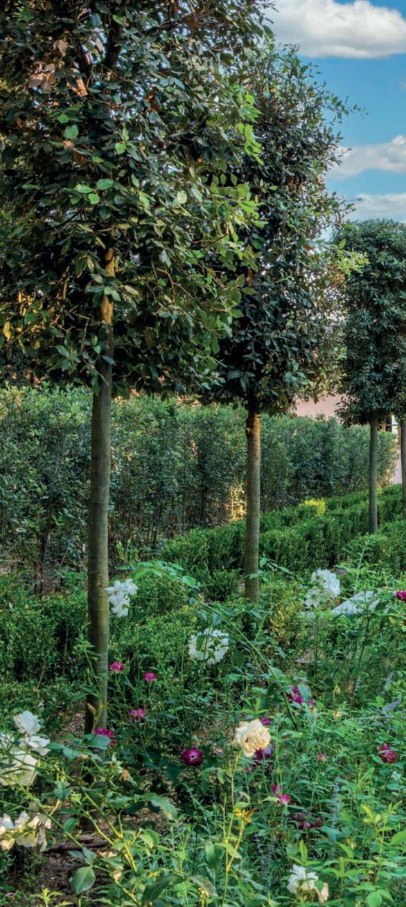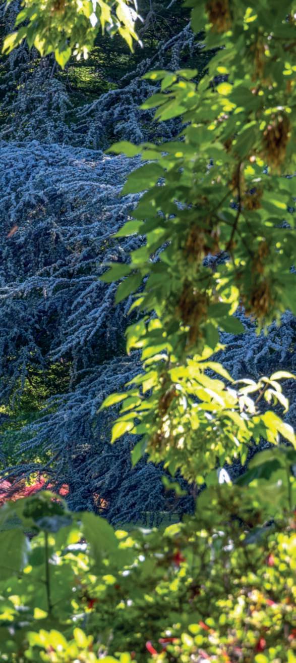 Onthepreviouspages,aview of VillaRaimondi fromthe ParcoNuovo.Onthesepages, a view oftheJapanesemaple collection from the western edgeoftheparkthrough thetrees: Cedrusatlantica ‘Glauca’ canbeseen. PhotobyDarioFusaro, ©ArchivioGrandiGiardini Italiani