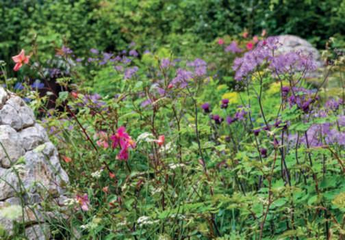 Inquestapagina,inalto, un’altravistadi Horatio’s Garden,coninprimopiano un Acercampestre a ceppaia; inbasso,asinistra,gliautori delprogetto, CharlotteHarris e HugoBugg;inbasso,a destra,undettagliocon Rosa x odorata ‘Mutabilis’, Thalictrum ‘BlackStockings’, Cirsiumrivulare ‘Trevor’sBlue Wonder’, Aruncus‘Horatio’ Nellapaginasuccessiva,altre viste del giardino.
