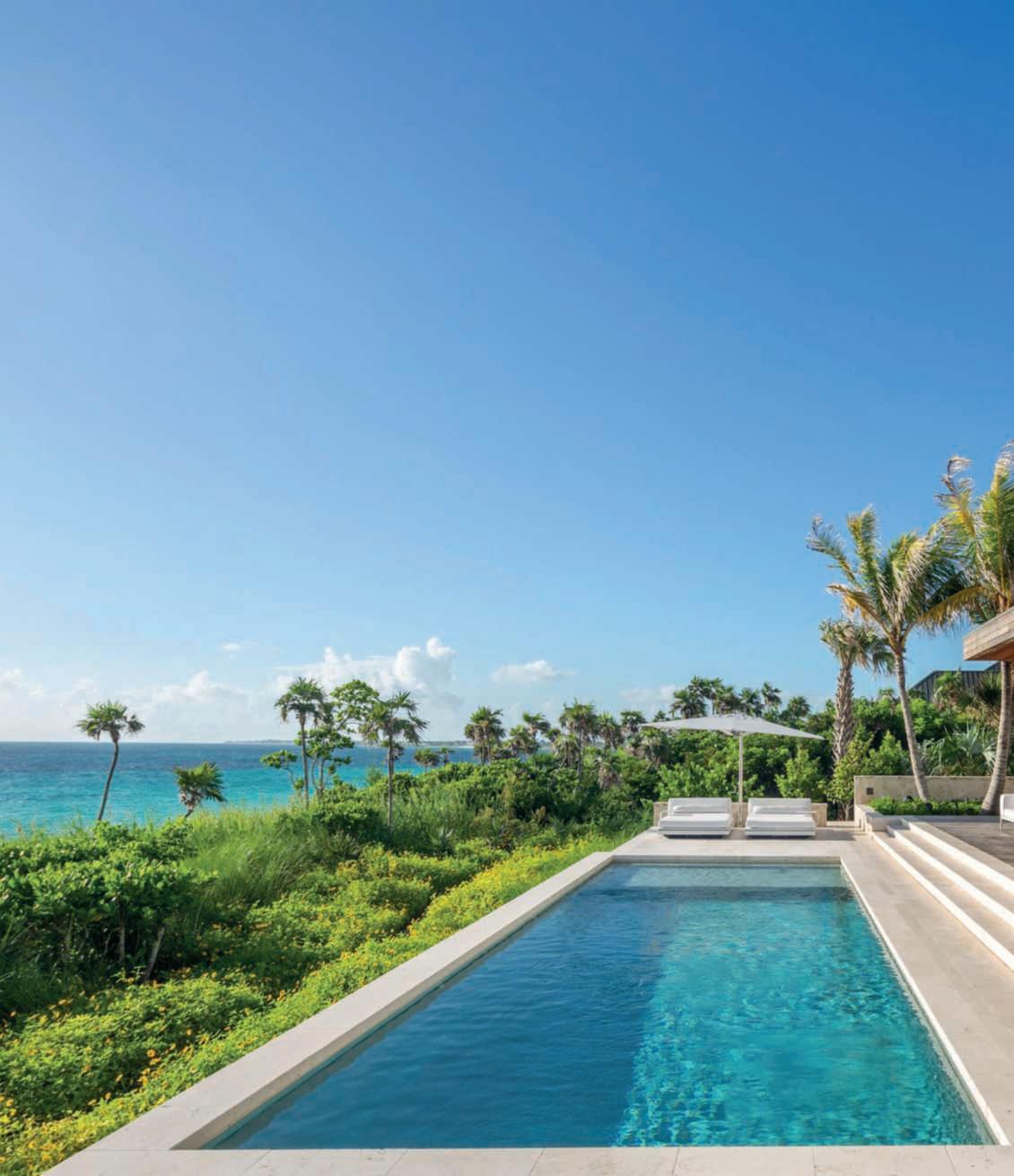 all’oceano,conlagrandepiscina,il porticoinIpè e la zona solariuminlimestone,una pietracalcareamoltocompatta, dicolorechiaro.Le piante messeadimoradaReynolds