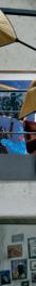 In this page, at the top, vertical elements in concrete punctuate the glass walls from floor to ceiling. Here on the right, the studio’s swimming pool, whose water reflects the surrounding nature