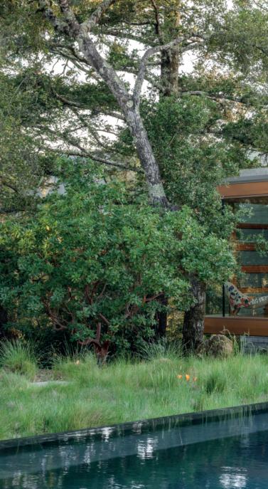 The allure of transparency. Like a glass box, the building designed by Swatt + Partners celebrates the symbiosis of architecture and nature, eliminating the boundaries between indoors and outdoors with large floor-to-ceiling windows. In one of the most charming wine-growing areas of California, the Dry Creek Valley, known for its more than 150 winegrowers and 60 wineries, Swatt + Partners architects have designed a home office for a young couple that has a close connection to nature and is visually linked to the main house, built by the same studio in 2008. The owners, who had moved from San Francisco, wanted to live far from the chaos of the city, seeking an oasis of peace and quiet. The landscape setting is spectacular: a dense forest of tall fir and oak trees completely surrounds the building, enveloping it and creating a perfect symbiosis. ‘Our approach,’ says architect Robert Swatt, “was oriented towards sustainability,