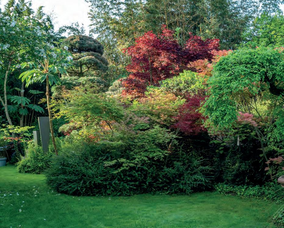 On these pages, green backdrops create the perfect setting against which to highlight rare species, specimens with an architectural or sculptural form, even when grown in large containers, such as Dasylirion quadrangulatum, Styphnolobium japonicum ‘Pendulum’, or a grove of Phyllostachys aureosulcata f. aureocaulis, with its upright canes of brilliant golden yellow, sometimes streaked with fine green lines, adding both light and verticality