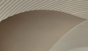 embracing an experiential design model for visitors. This year the architect and designer at the head of FNA Concept designed the Welcome Hall, a showcase and reception area that has been transformed into an immersive and welcoming environment thanks to the skilful use of materials, light and design. Among the primary elements that characterise the identity of this place are the natural wood floors, light textile backdrops and sculptural lamps with organic shapes created in close collaboration with Christian Pellizzari, an artist invited by Francesca Neri Antonello to participate in the project due to his mastery in Murano glass craftsmanship. The suspended fabrics enveloped the entire hall and filtered the light, creating an evocative visual depth, while the desk, also covered with fabric, was harmoniously inserted without interrupting the continuity of the room. The floor, made of irregular wooden tiles, continues the never-ending dialogue between Francesca Neri Antonello’s design and naturalness, enriching the space with an authentic and lived-in character, a further tribute to the memory of the materials. ■
