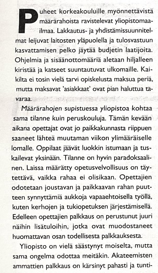 Olisivatko yliopiston suosimat verkkokurssit ja opiskelijoita viime aikoina pelottaneet lukukausimaksut olleet ratkaisu 1990-luvun budjettiongelmiin?