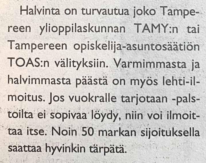Hienoa, että opiskelijoiden asuntotilanne on ainakin ysärillä ollut suotuisa. Olisivatko Pyynikin rannan veneet ratkaisu opiskelijaasuntojen nykyisiin jonoihin?