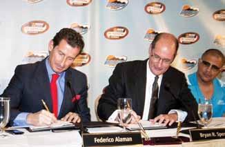 federico aLamán director de naScar méXico y Bryan r. SperBer, preSidente deL phoeniX internationaL raceway firmando eL acuerdo
