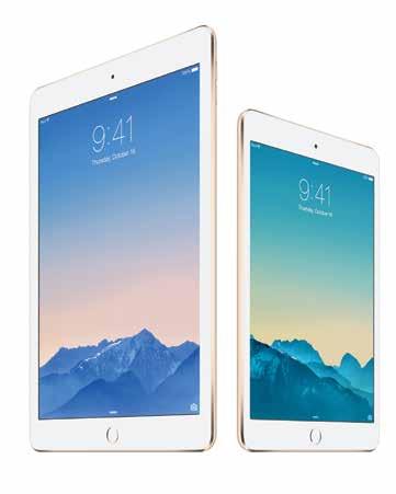 El iPad Air 2, con solo 6,1 mm de grosor y menos de 500 g de peso, incluye una nueva pantalla Retina, que ofrece contraste mejorado y colores más vivos y brillantes, y mejores cámaras para hacer fotos y vídeos de asombrosa calidad.