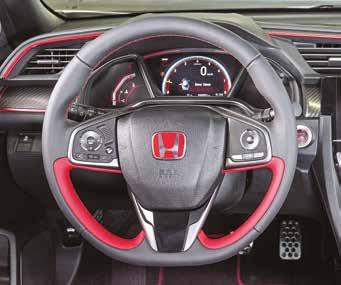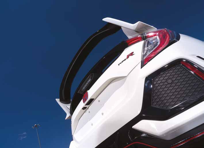 necesario contar con un motor de alto rendimiento. El propulsor del nuevo Civic Type R es uno de los más re cientes desarrollos de Honda, se trata de un cuatro ci lindros 2.0 litros, con inyección directa y turbocompre sor de 16 válvulas con doble árbol a la cabeza (DOHC) y sistema VTEC de apertura variable de válvulas, que desarrolla 306 caballos de fuerza a 6,500 rpm, con un torque de 295 libras-pie que se presenta entre las 2,500 y las 4,500 rpm.