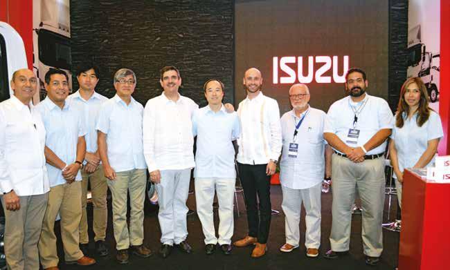 de Isuzu Motors de México, a su izquierda Alex Thiessen Long, presidente de la Asociación Nacional de Transporte Privado, ANTP, Tsukasa Sato, presidente y director general de operaciones de Isuzu, Yusuke Ozaki, subdirector de ventas y mercadotecnia de Isuzu y Constantino Vázquez, gerente de mercadotecnia y planeación de Isuzu.
