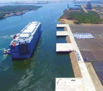 • Carga/descarga de buques RoRo y PCC, especializados en transporte hasta de 6 mil vehículos por embarcación.