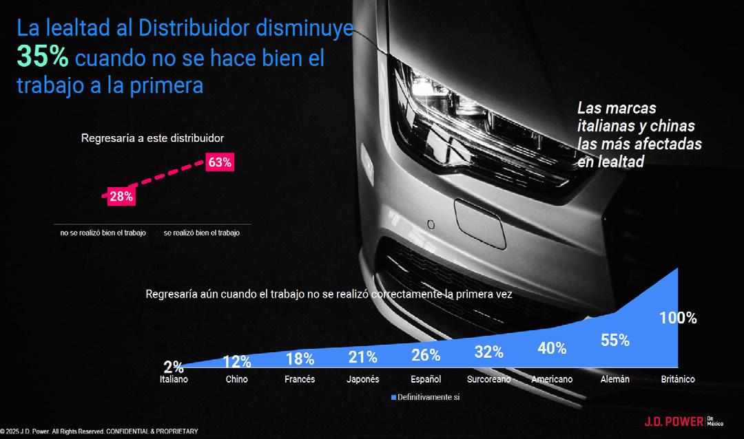 Además, solo el 49 % de estos propietarios afirma tener intención de volver al distribuidor y pagar por el servicio, la tasa más baja de lealtad al servicio entre todas las marcas y 13 puntos porcentuales por debajo de la media.·