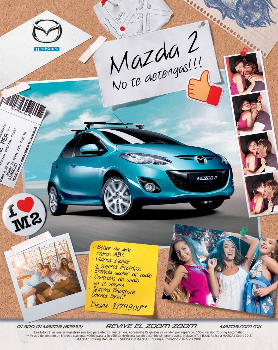 Mazda empredió una cruzada para que el Mazda2 se integre al estilo de vida universitario, en donde el tamaño es vital. Aseguran los mercadólogos que el subcompacto no desentona con las laptops tan delgadas como una revista, reproductores de MP3 del tamaño de una barra de dulce en donde las cosas buenas vienen en empaques pequeños.