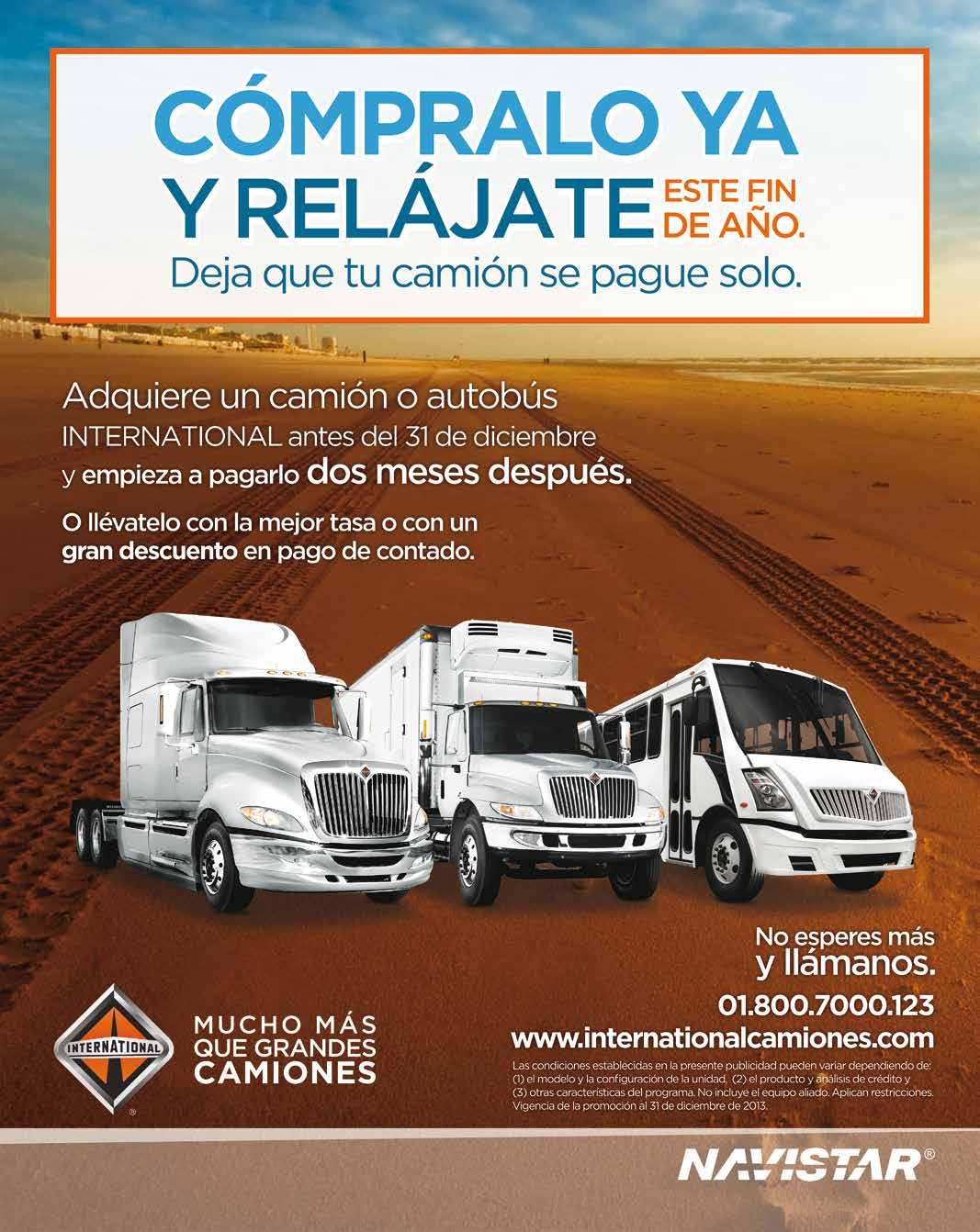 Acerca de Navistar México Navistar en México es una corporación líder de tecnologías y servicios para sector autotransporte. Cuenta con tres unidades de negocio: Planta, Refacciones y Financiera, así como su red de 19 distribuidores con más de 80 puntos de venta a lo largo de la República Mexicana. Es dueña de las marcas International, ProStar, TranStar, WorkStar, DuraStar, CityStar, 3000RE, 3300CE, 3100 FE / SCD, 4700 FE y 4700 SCD. Presente en más 70 países, en México genera 3,300 empleos directos y 8 mil indirectos. Su planta de Escobedo en Nuevo León es la de mayor producción de Navistar en todo el mundo fabricando en promedio 50 mil unidades al año, de las que se exportan el 85%.