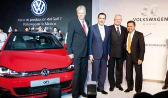 compañado por el Secretario de Eco nomía de México Ildefonso Guajardo, el gobernador del estado de Pue bla, Rafael Moreno Valle y Andreas Hinricks, presidente de Consejo Ejecutivo del Grupo Volkswagen de México, el Dr. Martin Winterkorn Presidente del Consejo Ejecutivo de Volkswagen AG, arrancó la producción del nuevo Golf 7 en la planta de Puebla en el marco de las festividades del 50 aniversario de la llegada de la firma alemana a nuestro país.