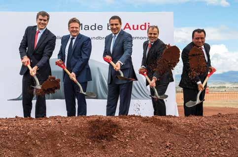 DE IZQUIERDA A DERECHA: David O`Donnell, el inversor, Dr. Bernd Martens, responsable de Compras en el Consejo de Dirección, Rafael Moreno Valle Rosas, Gobernador de Puebla, KlausPeter Körner, Director de Producción de Audi México, y Josué Martínez Santos, Presidente Municipal de San José Chiapa.