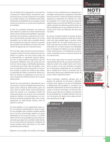 ción de talento de la organización o por parte de un servicio de “Head hunting”, tomando en cuenta el klout score, lo inicial usualmente es investigar en la redes sociales a los candidatos potenciales, clarificando la posibilidad de que empate su perfil virtual con la posición en la que está compitiendo el candidato.
