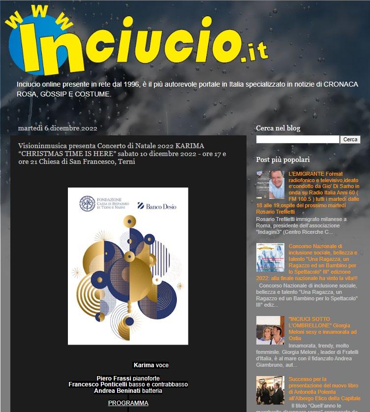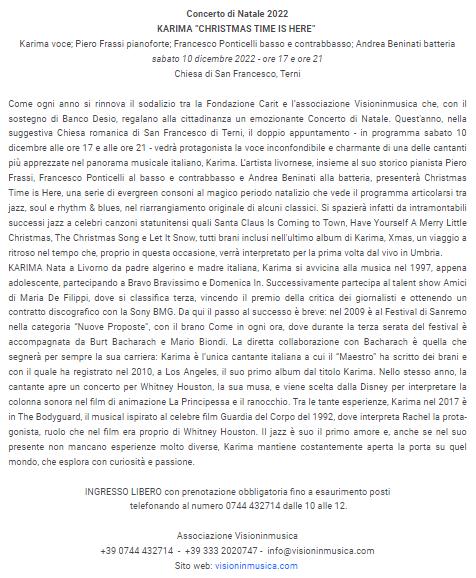 https://www.politicamentecorretto.com/2022/12/0 6/concerto-di-natale-di-visioninmusica-il-10dicembre-con-karima-in-christmas-time-is-hereterni-chiesa-di-s-francesco/