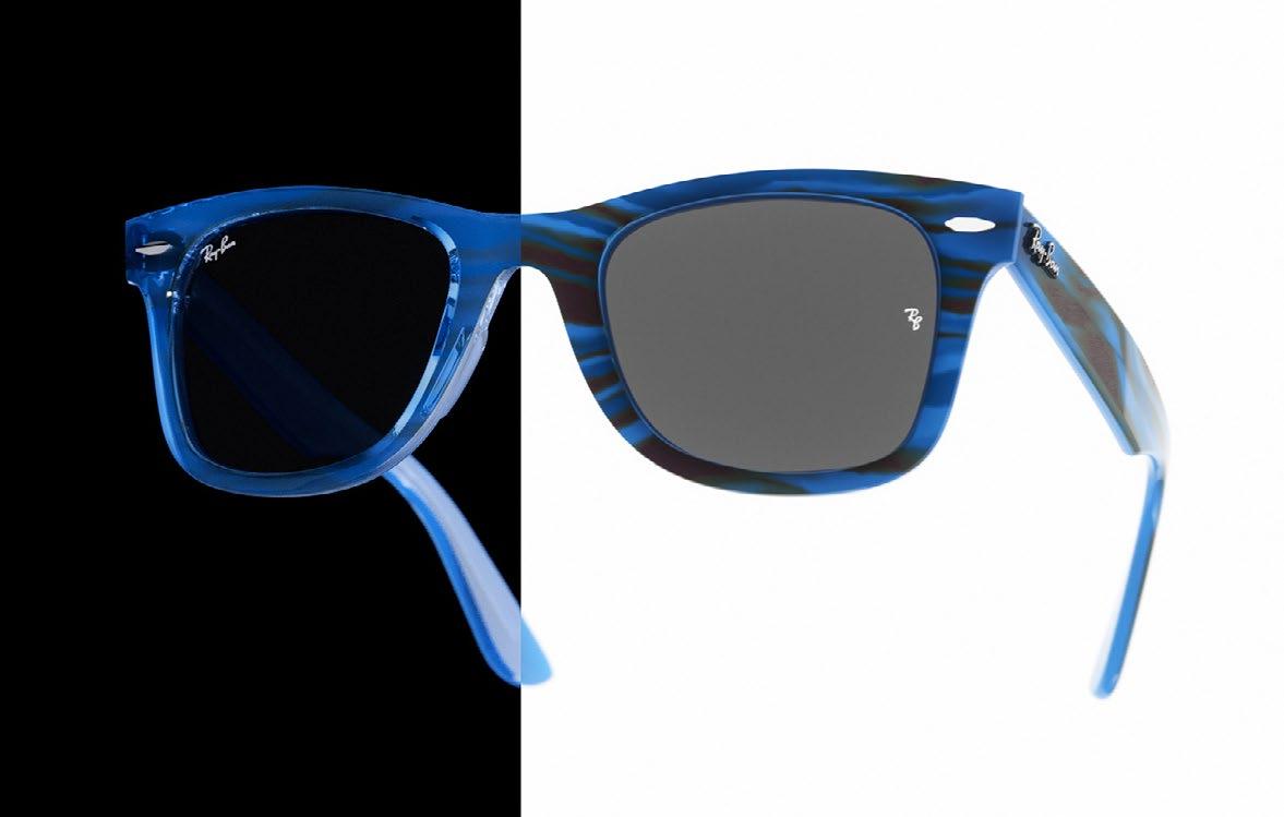 Ray-Ban Change is the new light-responsive frame powered by Transitions. Available in Ray-Ban’s Original Wayfarer and the Wayfarer Oval, in both sun and optical styles, the unique colours and patterns of the frame are created using Transitions photochromic dyes, which rapidly activate when exposed to UV light. The frame activates within seconds in sunlight and fades back within minutes indoors.