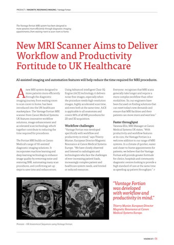 challenges in modern healthcare. This includes providing the tools to help clinicians make confident decisions faster when faced with growing backlogs; to help simplify workflows that can optimise staffing and equipment resource deployment; and about reducing the stress and exhaustion on health professionals,” states Mark Hitchman, Managing Director at Canon Medical Systems UK.