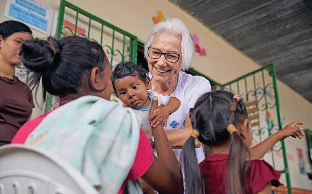 LISTENING TO REFUGEES The United Nations High Committee on Refugees honored Brazilian Sister Rosita Milesi, M.S.C.S., a Missionary Sister of the Sacred Heart of Jesus, with its 2024 Nansen Refugee Award for 40 years of activism on behalf of people forced to flee their homelands. “We learn the most when we listen with our heart and with care to the story that each refugee has lived and is living when we meet them,” Milesi told the National Public Radio blog “Goats and Soda.” She is pictured above with a Venezuelan family newly arrived to Brazil.