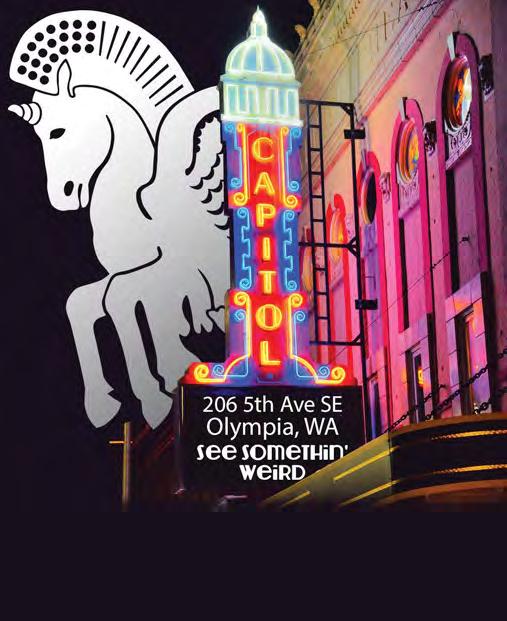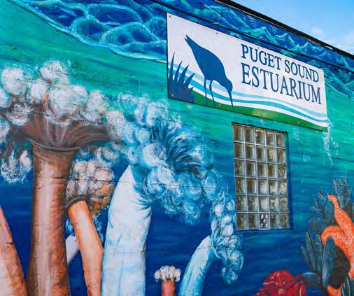Olympia is home to a thriving Creative District. Murals and random acts of poetry can be found on the sides of downtown buildings and traffic boxes, making downtown Olympia an artistic haven. Take a selfguided tour of the murals, starting at Traditions Fair Trade Gallery Building, with stops at the rainbow wings mural at the Estate Store, “You Are Here” at the Cascadia Grill, and many others along the way. Appreciate Olympia’s poetry scene with a self-guided tour of installations or experiences, including words near the Olympia Farmers Market that only appear when water is poured on the bricks.