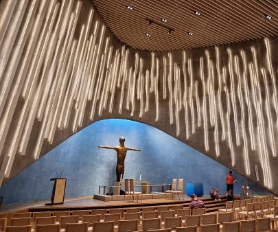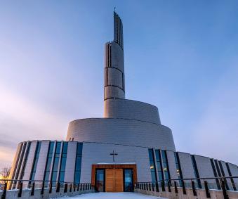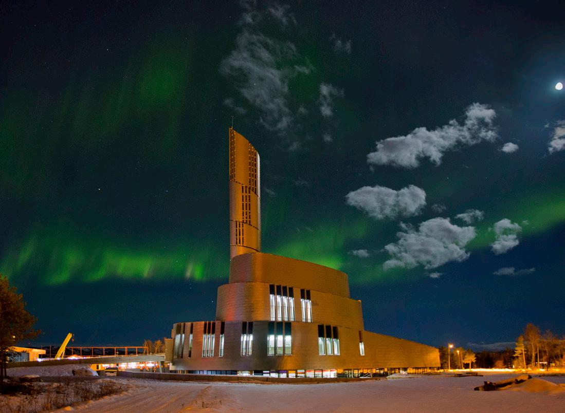 …that as a worthy end at the end of the main street there is a church shaped as the Northern Lights - Northern Lights Cathedral. The cathedral is an elegant modern building and a clear landmark for the City of Northern Lights. The cathedral was consecrated in 2013. The Northern Lights Cathedral is more than just a church. In the basement you will find Borealis Alta, where you can learn more about the Northern Lights.