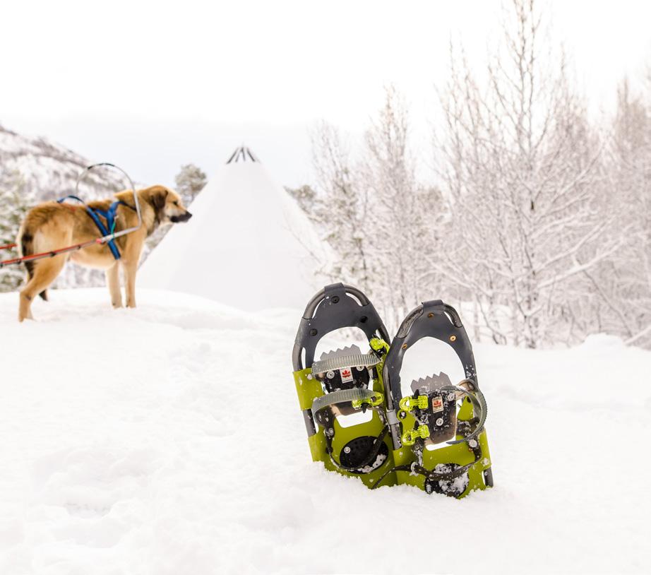 Option 1: Snowshoeing, Husky, Ice fishing & Lunch (4,5 hours). This snowshoe trek takes us out to our wilderness camp where we try ice fishing on a frozen lake and enjoy lunch (included) grilled on an open fire and served in a Sami lavvu (herdsmen’s tent).