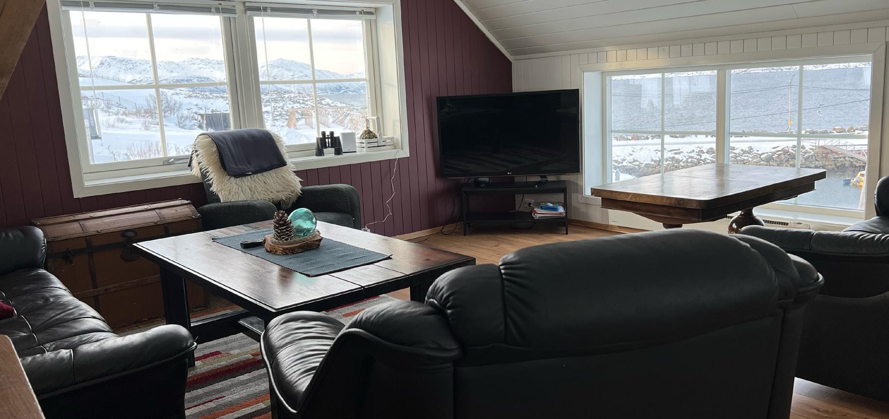 Seiland House has a perfect location in the entrance of the Altafjord, both for whale watching and for northern light observations. We offer accommodation in our apartments with panorama windows towards the sea, or spacious bedrooms in our main house. Our guests can order a full package including transfer, meals, warm outdoor clothes, sauna/hot tub and daily whale watching tours from the pier. Leave your comfort zone and embark with us to the remote island of Seiland. Here you live in the middle of the majestic fjord.
