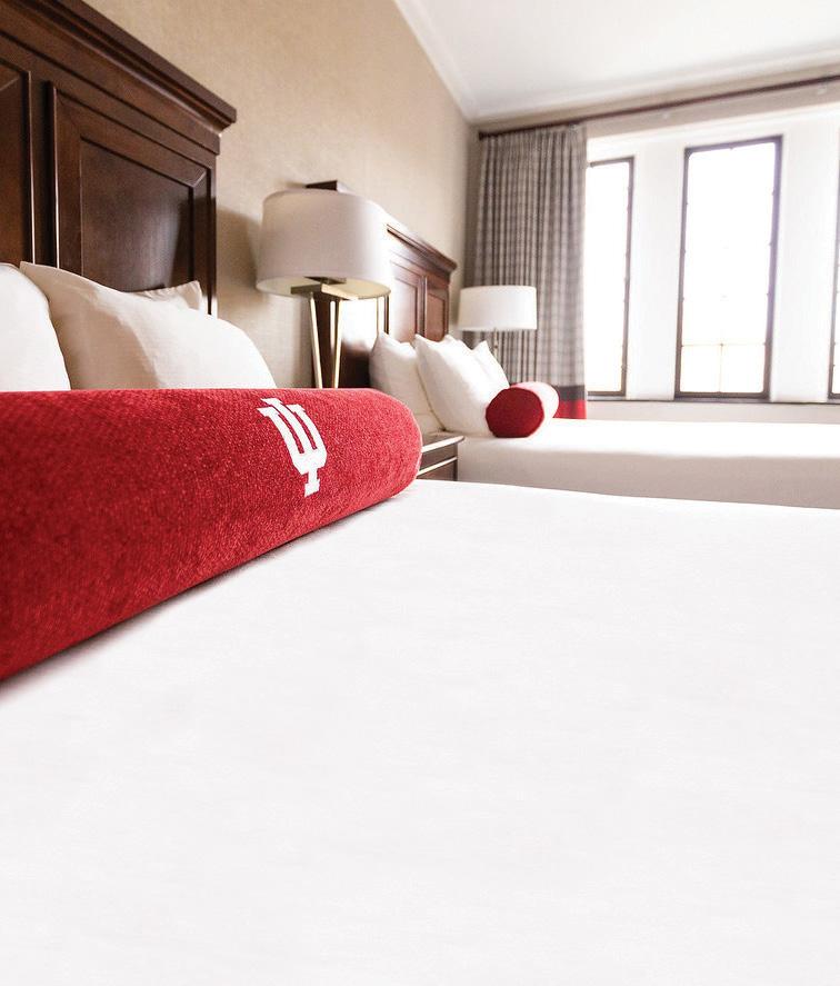 HOTEL FOR HOOSIERS 210 E Kirkwood Avenue • 812 994 0500 • graduatehotels.com/bloomington • Poindexter, an all-day café • Complimentary Wi-Fi • 24-hour fitness center with Peloton® Bikes • Pet-friendly accommodations • Outdoor event space • Complimentary bike rentals • Stranger Things-themed suite Graduate Bloomington is just a short walk to IU’s historic campus and steps from the lively Courthouse Square, making it the perfect place for students, alumni and B-Town visitors.