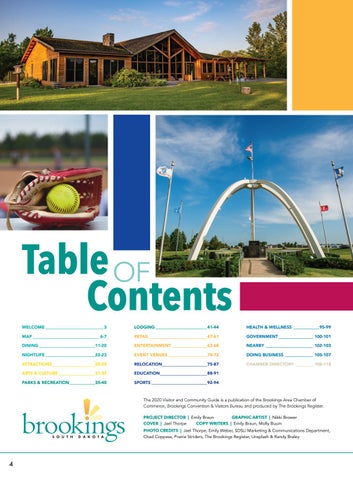 The 2020 Visitor and Community Guide is a publication of the Brookings Area Chamber of Commerce, Brookings Convention & Visitors Bureau and produced by The Brookings Register. PROJECT DIRECTOR | Emily Braun GRAPHIC ARTIST | Nikki Brower COVER | Jael Thorpe COPY WRITERS | Emily Braun, Molly Buum