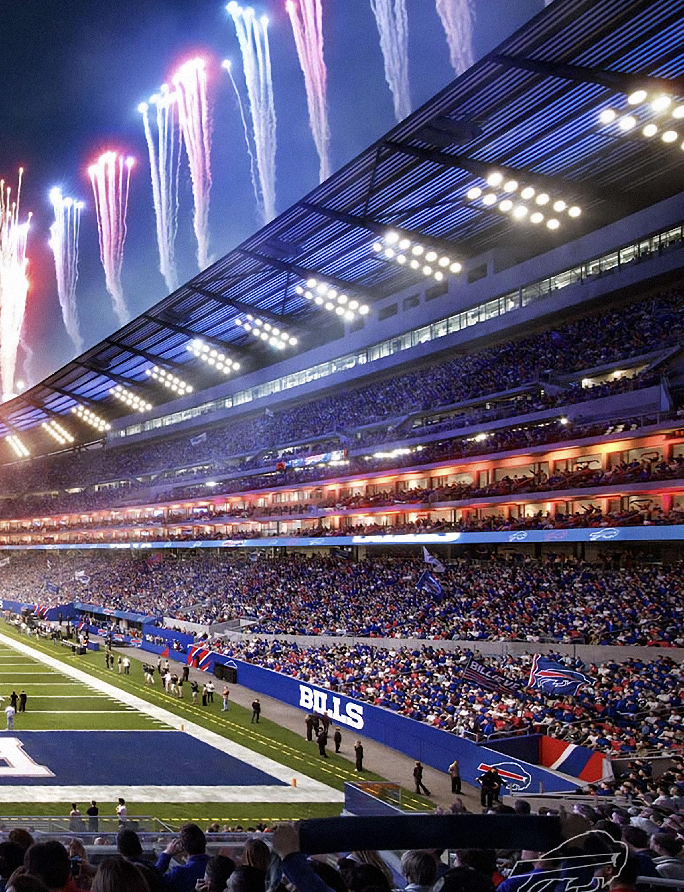 provide cover to much of the fanbase while also keeping the stadium open-air—a must for Bills Mafia during those December games. Highmark Stadium, which is right across the street from the old venue that original owner Ralph Wilson constructed in the 1970s, will honor the team’s rich history while also celebrating the bright future of the Bills—and Buffalo.
