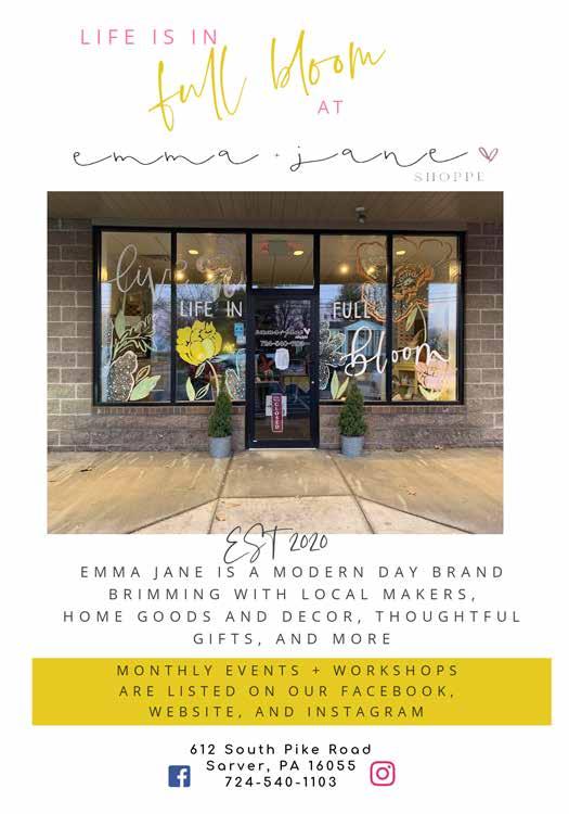 Located in Sarver, Emma + Jane Shoppe, is a brand new boutique where you can find unique gifts, homegoods, bath essentials, cozy outfits, and more. The boutique also hosts workshops and crafting classes open to the public.