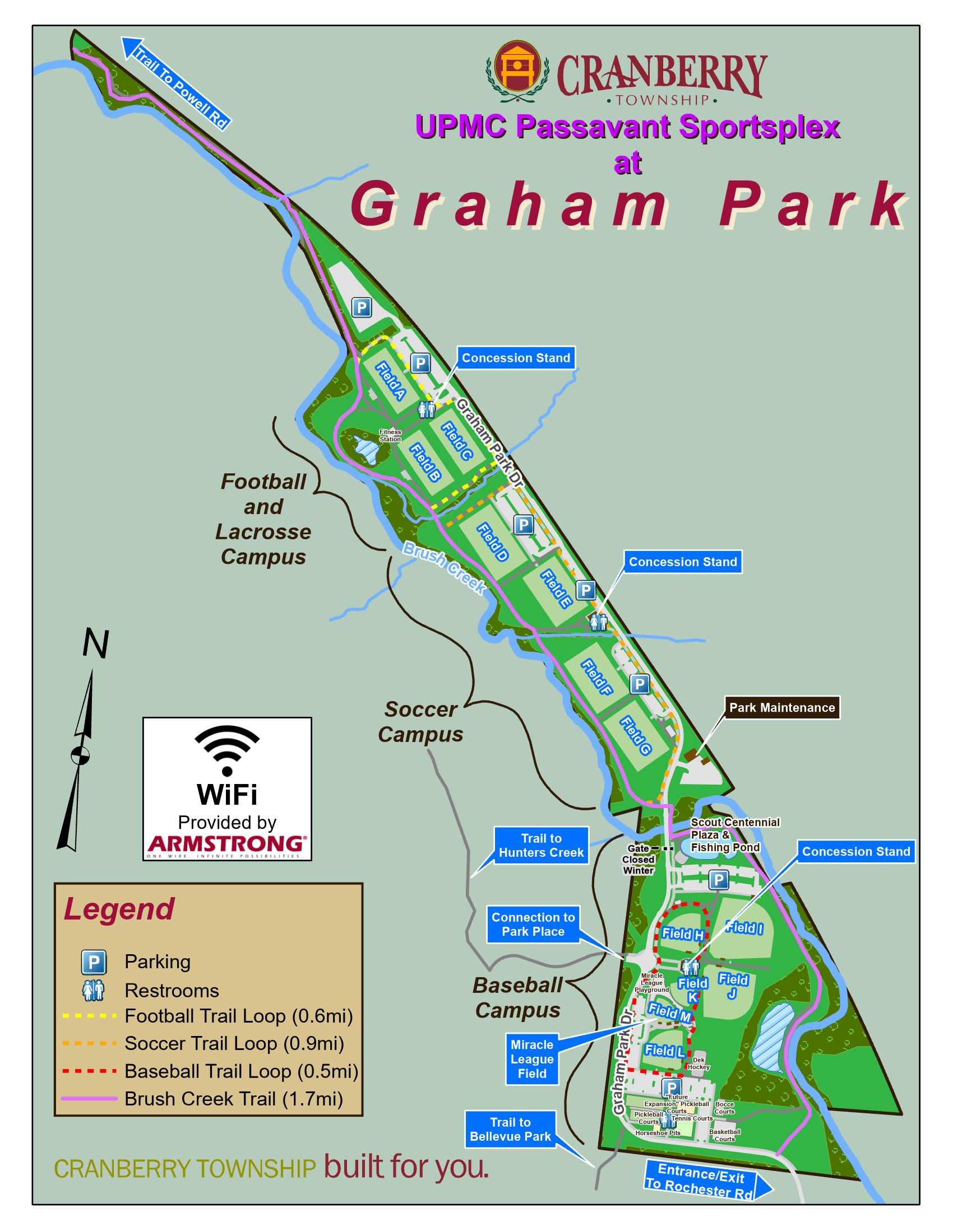 The Butler-Freeport Community Trail is a rail-trail, preserving the route of Butler County’s first railroad (1871), the Western Pennsylvania Railroad, which connected the City of Butler to the Allegheny River port of Freeport. As a rails-to-trails project, the 21-mile trail offers a level, natural crushed limestone surface with a gradual uphill grade as it travels north (barely noticeable to walkers) and the converse downhill grade as it travels south (greatly enjoyed by bicyclists). Dogs are welcome but required to be on a leash and under the control of the person walking them on the trail.