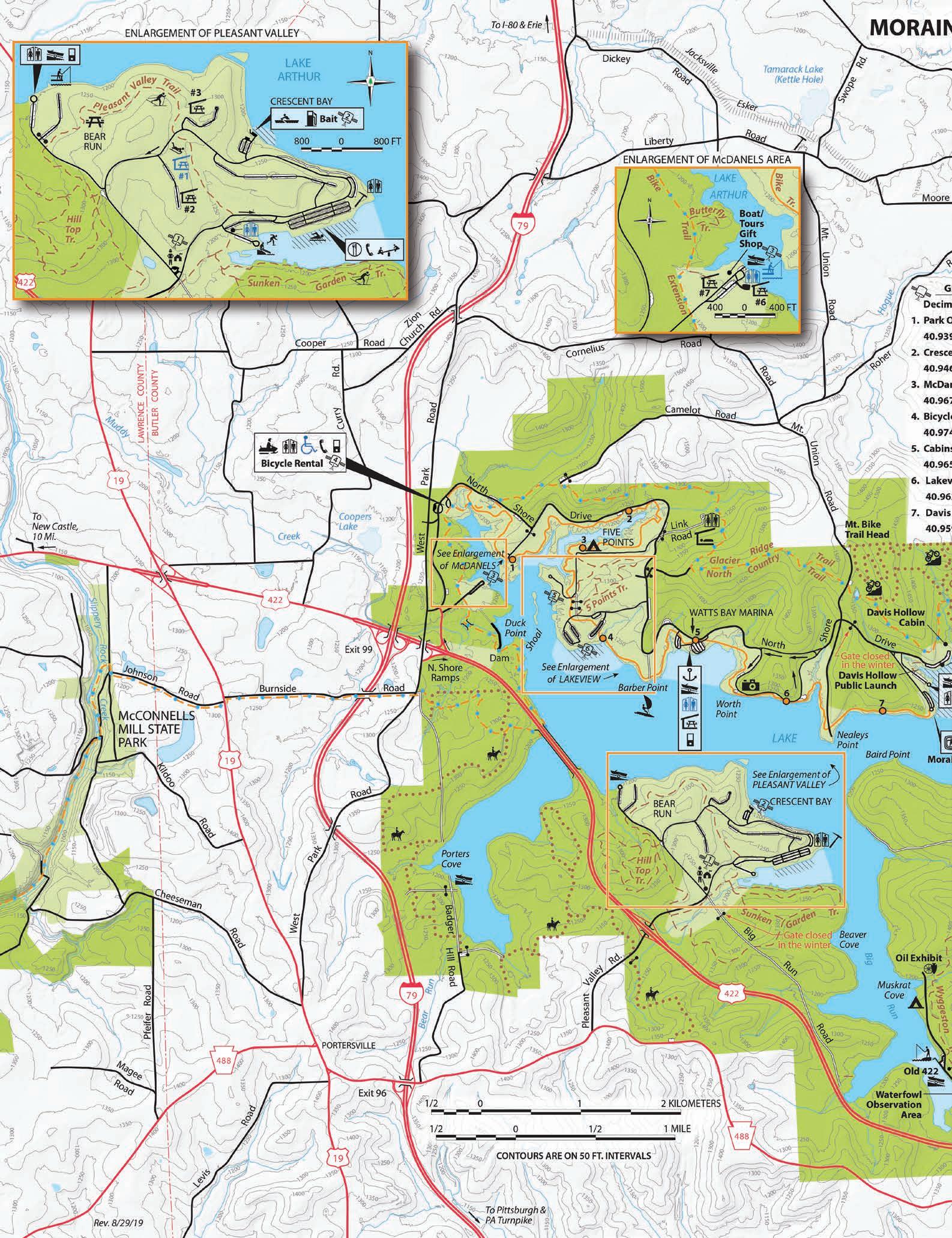 The new MSA Thruway in Cranberry Township is now open and features a 150-foot underpass linking Cranberry Woods Business Park and Cranberry Springs. The MSA Thruway provides alternative access to those developments for vehicles, pedestrians and bicycles, and should reduce traffic congestion in the Route 228 corridor. Preston Park in Butler has a new one-way park road entrance through the iron gates that gives way to additional parking spaces, new restrooms, a stormwater pond, and a fountain near the entrance of the park.