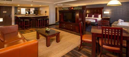 All rooms remodeled 2018 and 2019, the 149 rooms feature free WiFi, Keurig coffee makers, and refrigerators. Free business center, heated indoor pool/spa/fitness facility. Three dining choices, free nightly entertainment, and gaming. Conference, banquet, and convention facilities. Free parking. No resort fees.