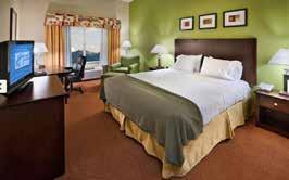 81 non-smoking rooms, newly remodeled, including 55” LCD TV, free wired and wireless HSIA, coffeemaker, microwave, and refrigerator in every room. Complimentary hot buffet breakfast. Hot beverages served 24 hours, fresh-baked cookies each evening. Enjoy our indoor pool, spa, fitness and business centers. Pet friendly. Meeting and conference rooms.
