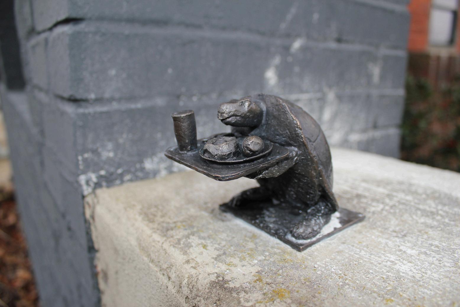 On this block was the law office of Albert P. Brewer, a Decatur native who served as Governor of Alabama from 1968-1971 This turtle suggests Gov Brewer as a young Decatur attorney walking to mail an important letter at the Albany Station Post Office that stood near the corner on Johnston St from 1949-1965