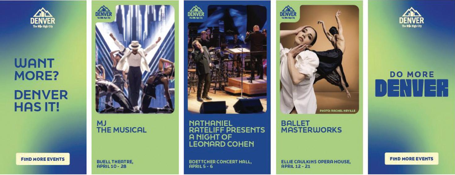 • To help boost attendance, the department attended 12 pre-promotion events in 2024 for customers who will be meeting in Denver. This involved staffing a Denver booth at the group’s 2024 convention to hand out brochures, answer questions and encourage delegates to attend their 2025 conventions in Denver. We also provided materials, displays and giveaways for six additional citywide conventions.