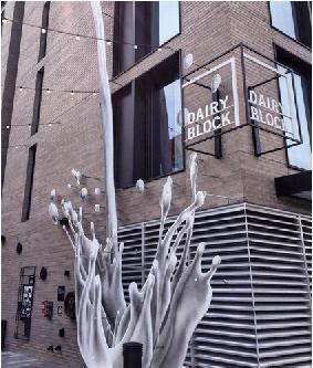 MCA Denver proves that contemporary art can be thought-provoking and fun all at once. The sleek, David Adjaye-designed building is easily recognizable thanks to the whimsi- cal pierced heart sculpture (“Toxic Schizophrenia” by Tim Noble and Sue Webster) that greets visitors at the entrance.