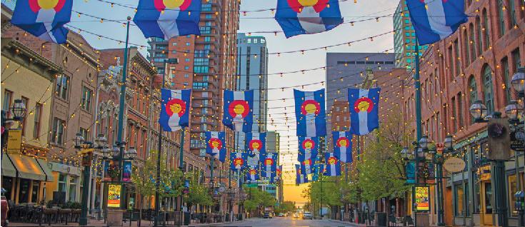 Pg. 20 (clockwise from top): 16th Street Mall by TruBlu Images; Cherry Creek North; Art District on Santa Fe by Nikki A. Rae Photography; McGregor Square.