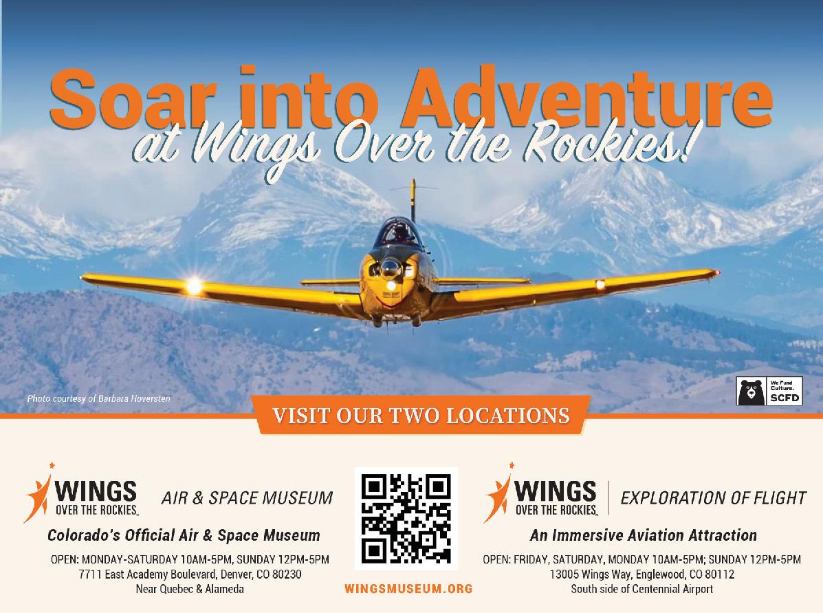 Pg. 36 (clockwise from top): South Broadway by TruBlu Images; Stanley Marketplace by TruBlu Images; Wings Over the Rockies by Rich Grant; Old South Pearl Street by Rich Grant; South Broadway’s Antique Row by Rich Grant; Washington Park by Rich Grant.