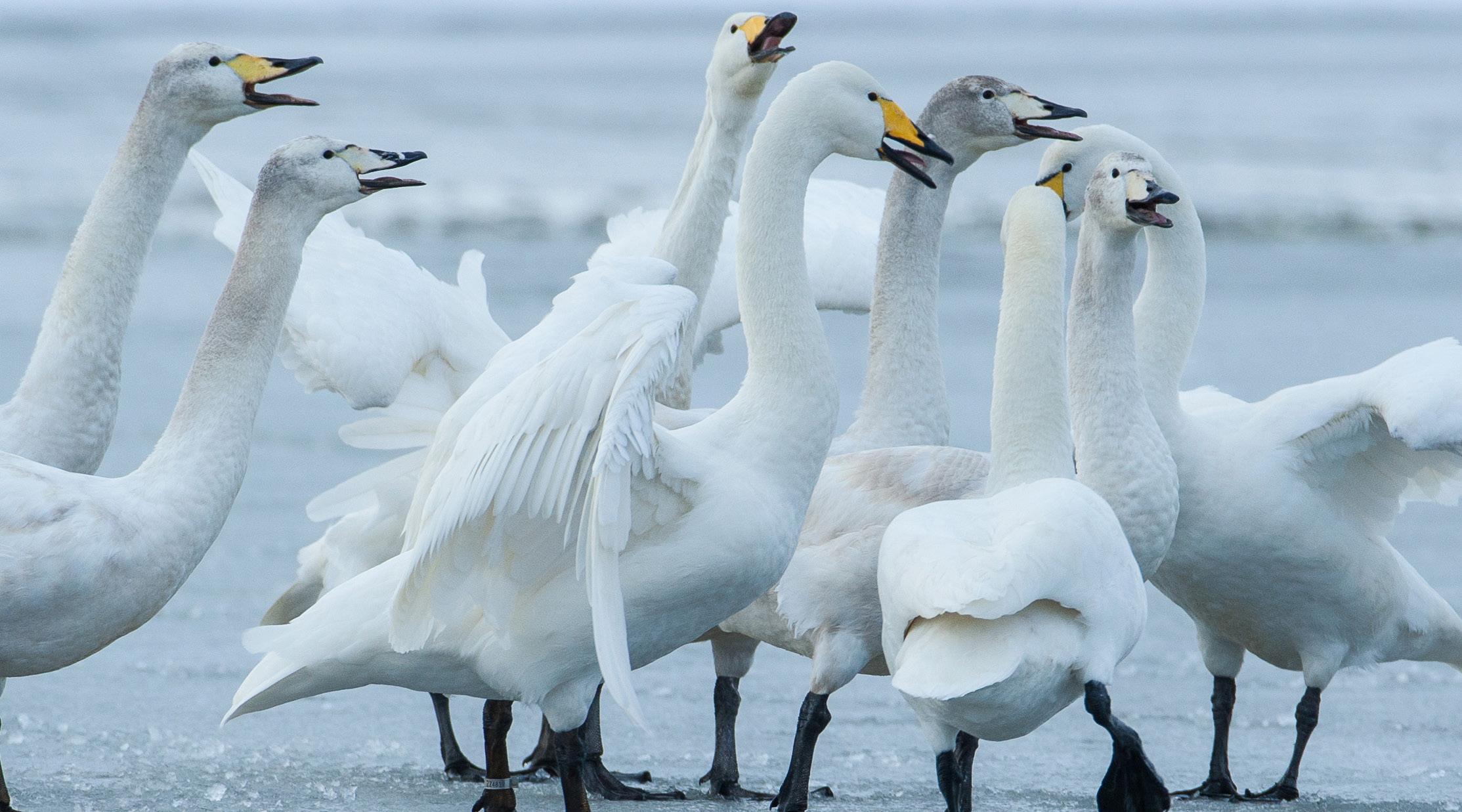 Bewick’s and whooper swans roost in thousands on the Ouse Washes at Welney where they can be viewed under floodlights at the Wildfowl and Wetlands Trust centre. Try and be there for feeding time.