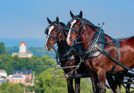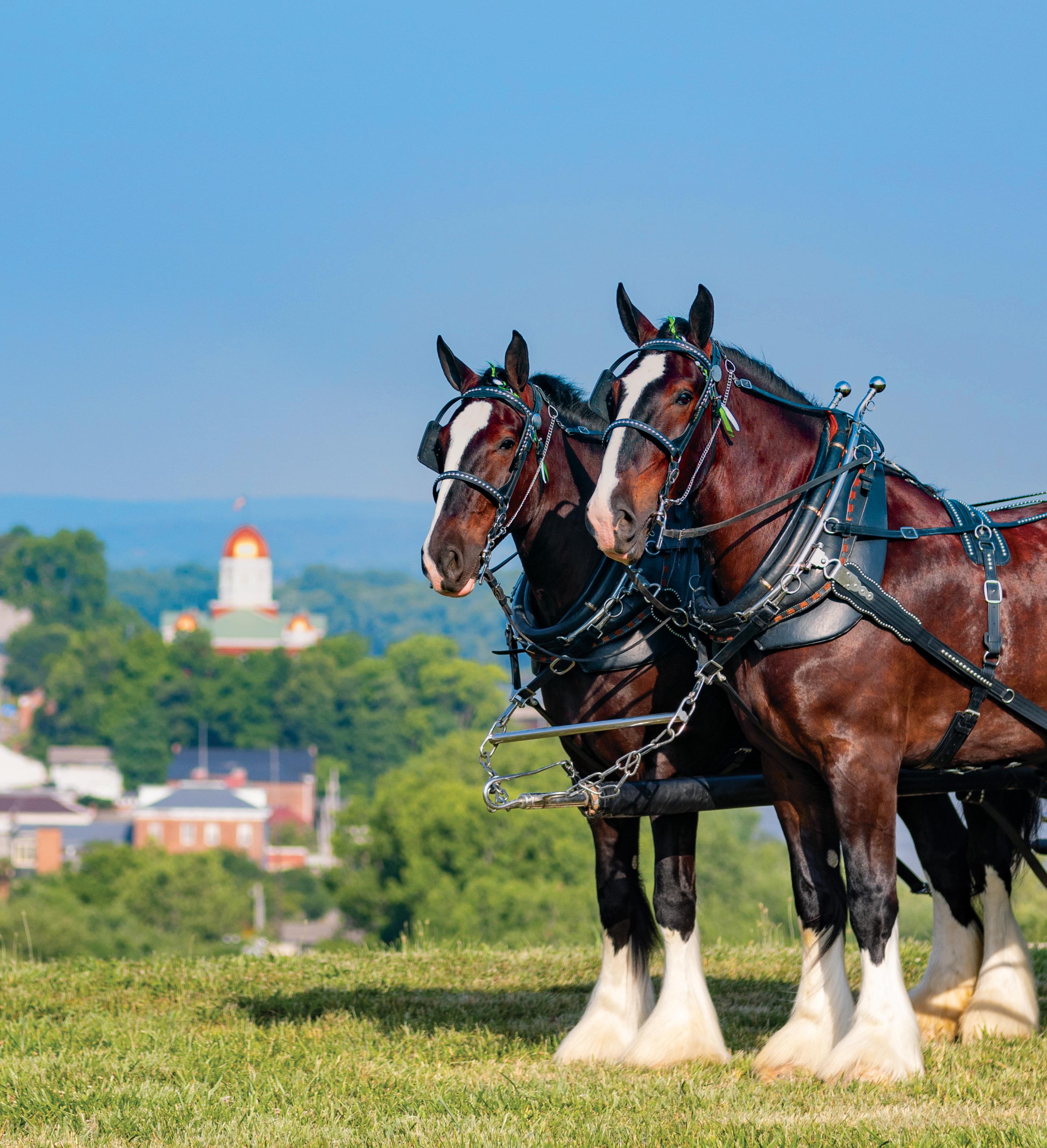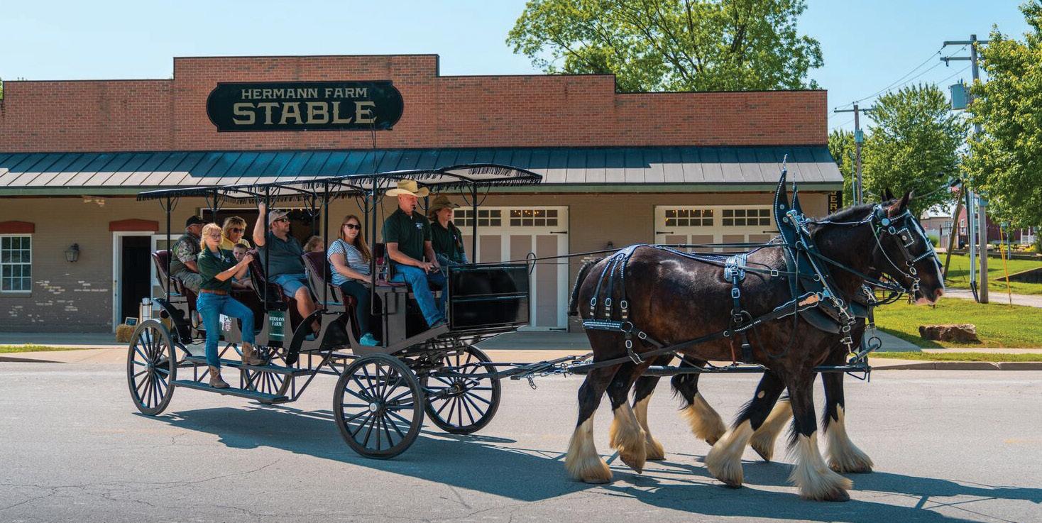 About the Cover: Majestic Shire horses stand atop the bluff at Hermann Farm overlooking the village and Gasconade County Courthouse.