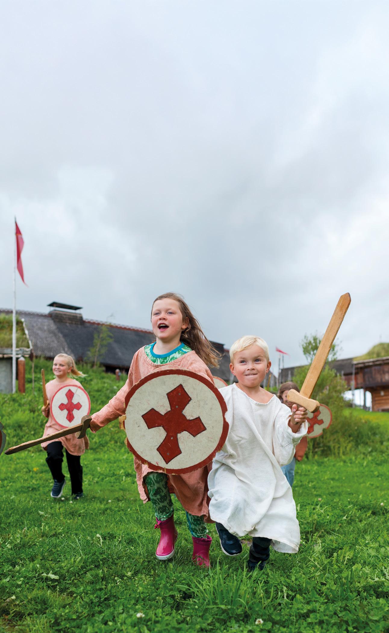 8 DAS NATIONALE KULTURZENTRUM STIKLESTAD vermittelt die die Geschichte der Schlacht von Stiklestad und von Olav Haraldsson und bietet das ganze Jahr über ein breites Kulturprogramm. Die Olsok-Tage und das „Spiel vom Heiligen Olav“ im Juli sind die größten Veranstaltungen. Auf dem mittelalterlichen Gehöft Stiklastadir bekommst du spannende Geschichten aus einer Zeit, in der Ehre, Macht und das Recht des Stärkeren selbstverständlich zum Alltag gehörten. Der Wikingersommer in Stiklestad bietet ein umfangreiches Programm. snk.no