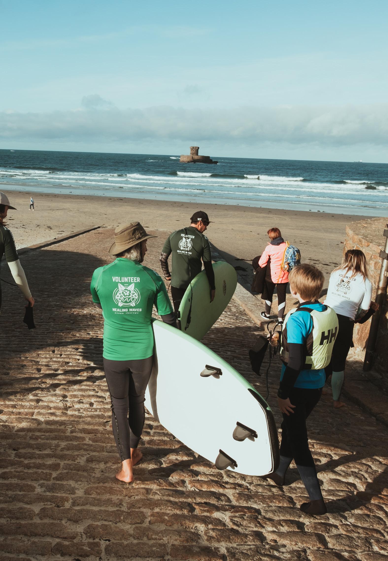 Healing Waves run both 1:1 and group surf sessions. 1:1 surf sessions are typically held for those who find a group setting overwhelming and require a lower key, bespoke approach. One or two appropriately trained and experienced volunteers are required to facilitate these sessions. Group sessions predominantly take place at the weekend. These happen once or twice each month in the summer between May and October.