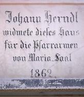 Johann Herndl ging als Stifter des Armenhauses (1862) in die Geschichte der Maria Saaler Gemeinde ein. Sein Grab befindet sich am Kirchhof.