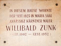 Der 1902 geborene Klagenfurter Willibald Zunk arbeitete ab dem Jahr 1925 als Volksschullehrer in Maria Saal. Ab 1924 beschäftigte er sich intensiv mit Zeichnung und Malerei, der er sich bald ganz widmen sollte. Bis 1927 arbeitete Zunk gemeinsam mit Böckl, als dessen Schüler er sich bezeichnete. Ab 1931 führten ihn Studienreisen nach Frankreich (starke Beeinflussung durch Cezanne und Delauny), nach Italien und Deutschland. Zwischen 1941 und 1945 versah er Kriegsdienst in Frankreich, um nach 1945 in seine Wahlheimat Maria Saal zurückzukehren, wo er ab 1950 Vizebürgermeister wurde.