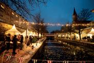 Ambiente natalizio e musica tradizionale nel porto di Lendhafen nel centro della città.
